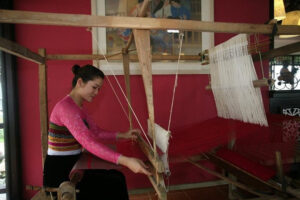 + 14h00 – 16h00: Quý khách tham gia chương trình khám phá thung lũng Mai Châu thăm những ngôi nhà sàn nhỏ xinh của người Thái để tìm hiểu những nét văn hóa, phong tục tập quán độc đáo của họ. Hướng dẫn viên sẽ đưa bạn tới thăm những gian hàng thổ cẩm, cùng học cách dệt thổ cẩm. Quý khách có thể tự do mua sắm quà tặng lưu niệm cho người thân và chụp hình cùng người dân bản địa