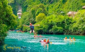 12:45 Quý khách tiếp tục đến với Sông Chày – Hang Tối, chinh phục Zipline, tắm bùn khám phá hang tối, chèo thuyền Kayar trên dòng sông xanh ngọc,và 1 số trò hơi hấp dẫn dưới nước.., một điểm đến độc đáo lần đầu tiên duy nhất tại Việt Nam.
